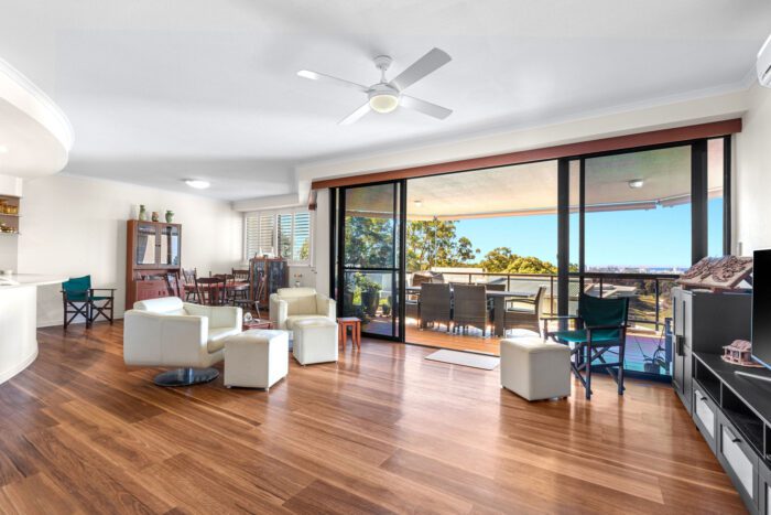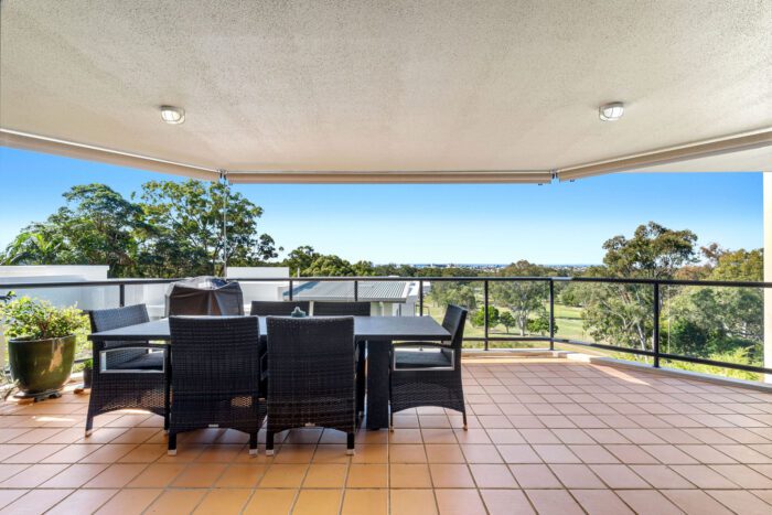 Set quietly within the boutique “The Crest” complex, this oversized apartment offers a rare combination of panoramic views, complete privacy, and exceptional peace. Overlooking the lush fairways of Headland Golf Club with sweeping ocean vistas from Mooloolaba to Caloundra, it’s a serene retreat designed for low-maintenance coastal living.
