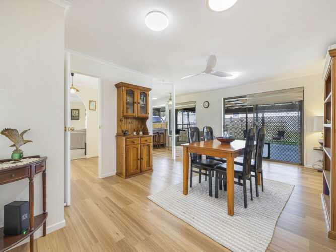 Inside, the layout is practical with two separate living areas that flow naturally to the dining and kitchen, creating spaces that work for both entertaining and everyday living. The kitchen looks out to the backyard, so you can prepare meals while keeping an eye on the kids or simply enjoy the leafy views. Three well-proportioned bedrooms provide comfort for the whole family, with air conditioning in the master and living zones.