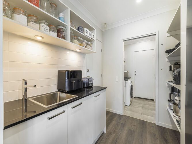 From the moment you step inside, the sense of space is immediate, with high ceilings flowing throughout the home. The heart of the residence is a stunning open-plan kitchen fitted with Blanco gas cooking, a butler’s pantry, and abundant storage. Ducted air conditioning ensures year-round comfort, while internal Yamaha speakers set the mood for entertaining.